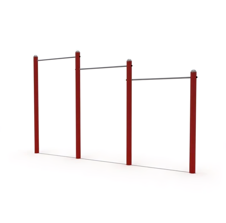 Barras de ejercicio tipo calistenia con 3 diferentes altura para entregar su función a un mayor rango de persones de diferentes altura. Estas barras ponen a prueba a sus usuarios para que ejerciten con su propio peso. Además, su diseño ergonométrico y multifuncional permite realizar una amplia variedad de ejercicios que fortalecen diferentes grupos musculares.